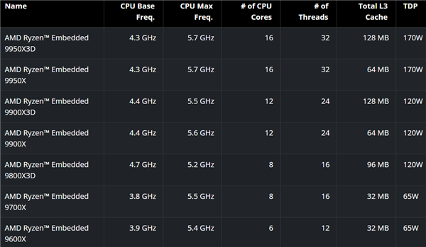 10月8日消息,AMD正式发布了锐龙嵌入式9000系列处理器,从命名到规格完全复刻了桌面版锐龙9000系列,包括锐龙9000X3D系列。