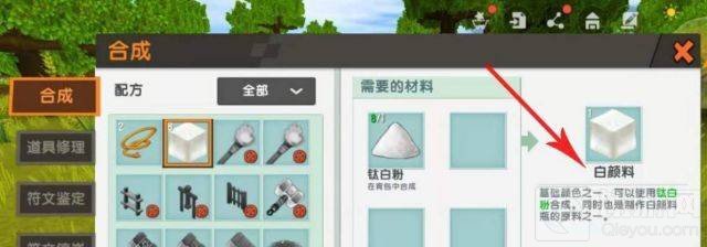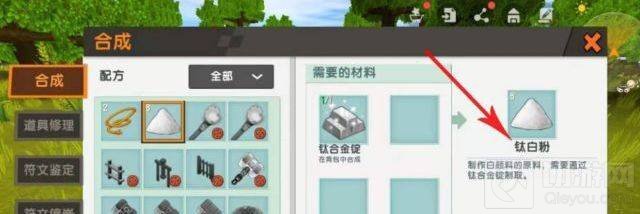 然后在工匠台使用钛合金锭制作钛白粉。
