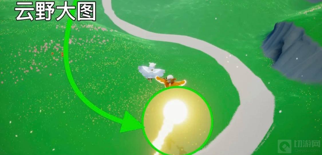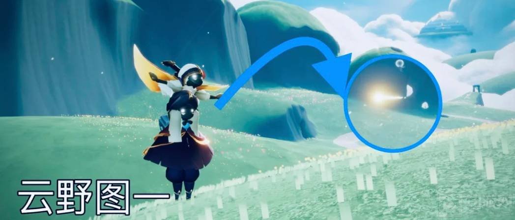 1、先进入云野一图,有圆形小山包的地图,进来之后就能够看到黄色发光的流星体,这个就是星光。