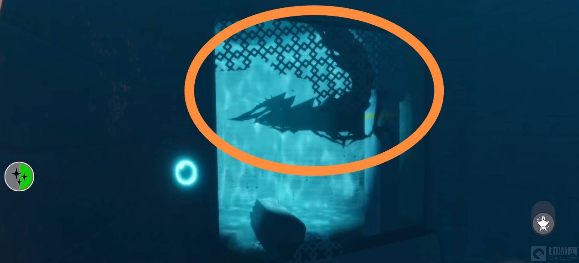 7、在第二株水草所在的位置就会看到冥龙。