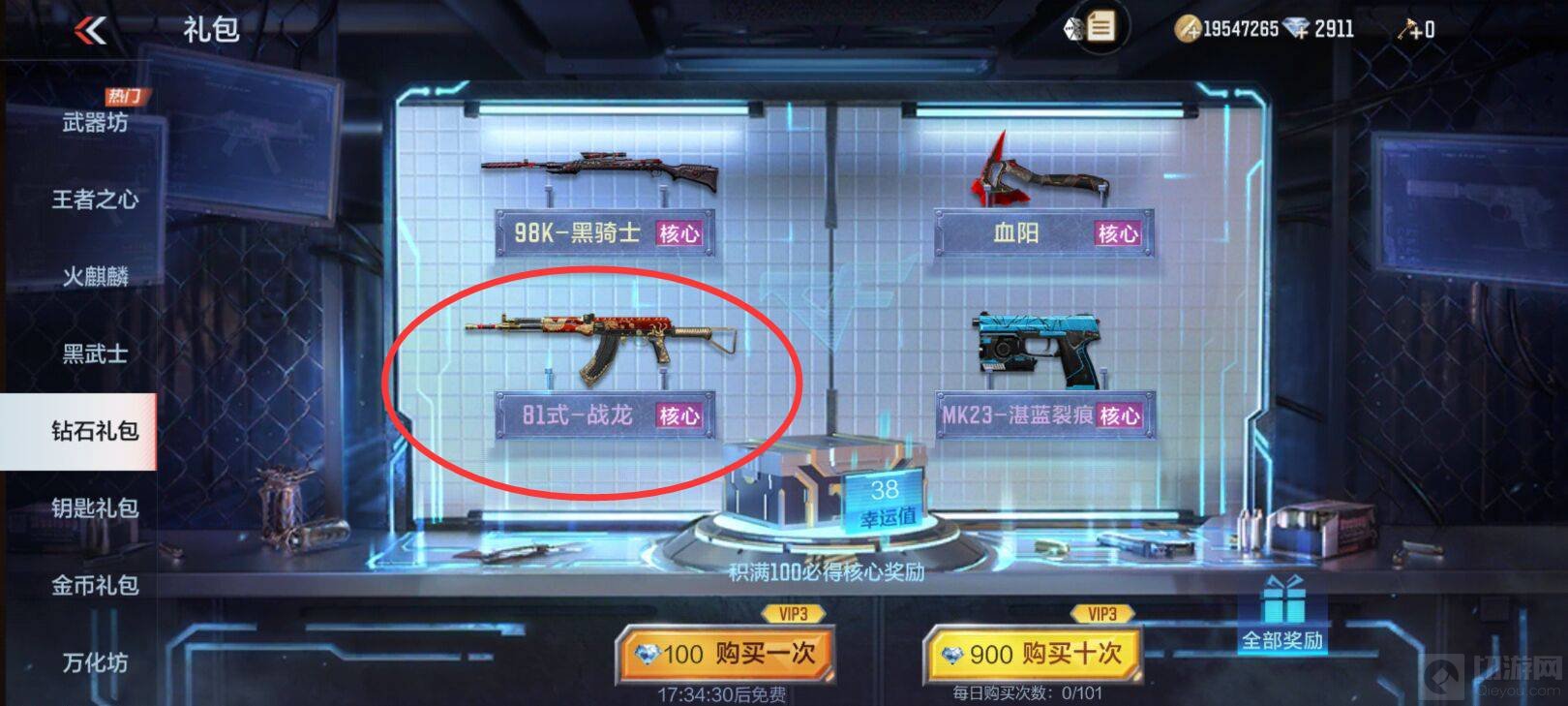 2. 也可以在礼包里的钻石夺宝里抽取81式战龙。