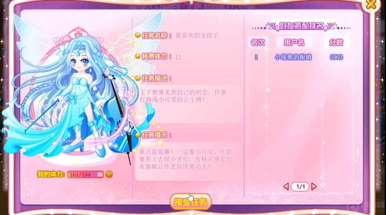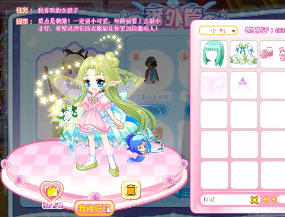4、然后根据左上角的提示,选择和题材搭配的衣服,这里选择精灵系的。