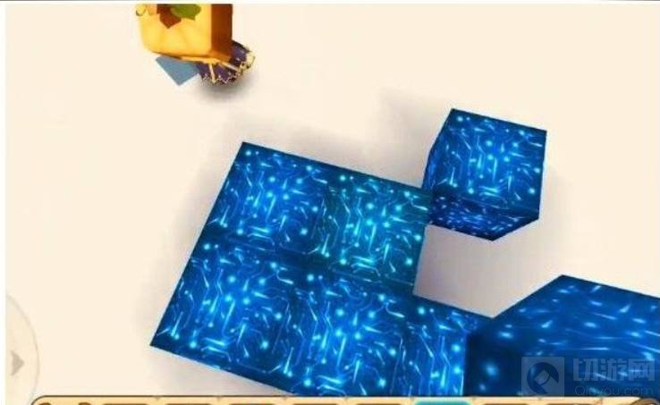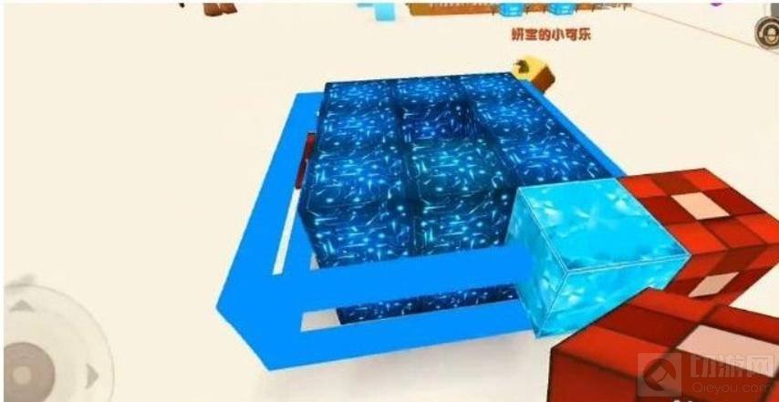4、在确认区域复制方块放置完后,出现的立方体的标记范围已经完全履盖了复制建筑,接着将蓝色工作台放到一个区域复制方块的旁边,确认复制区域。