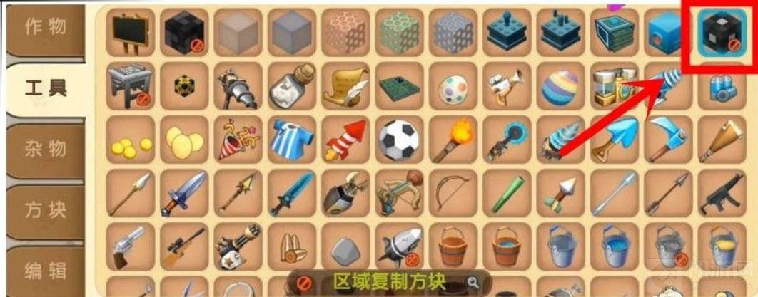 3、选择复制器时,一定要注意:如图所示,选择的是区域复制方块,而不是方块复制器。