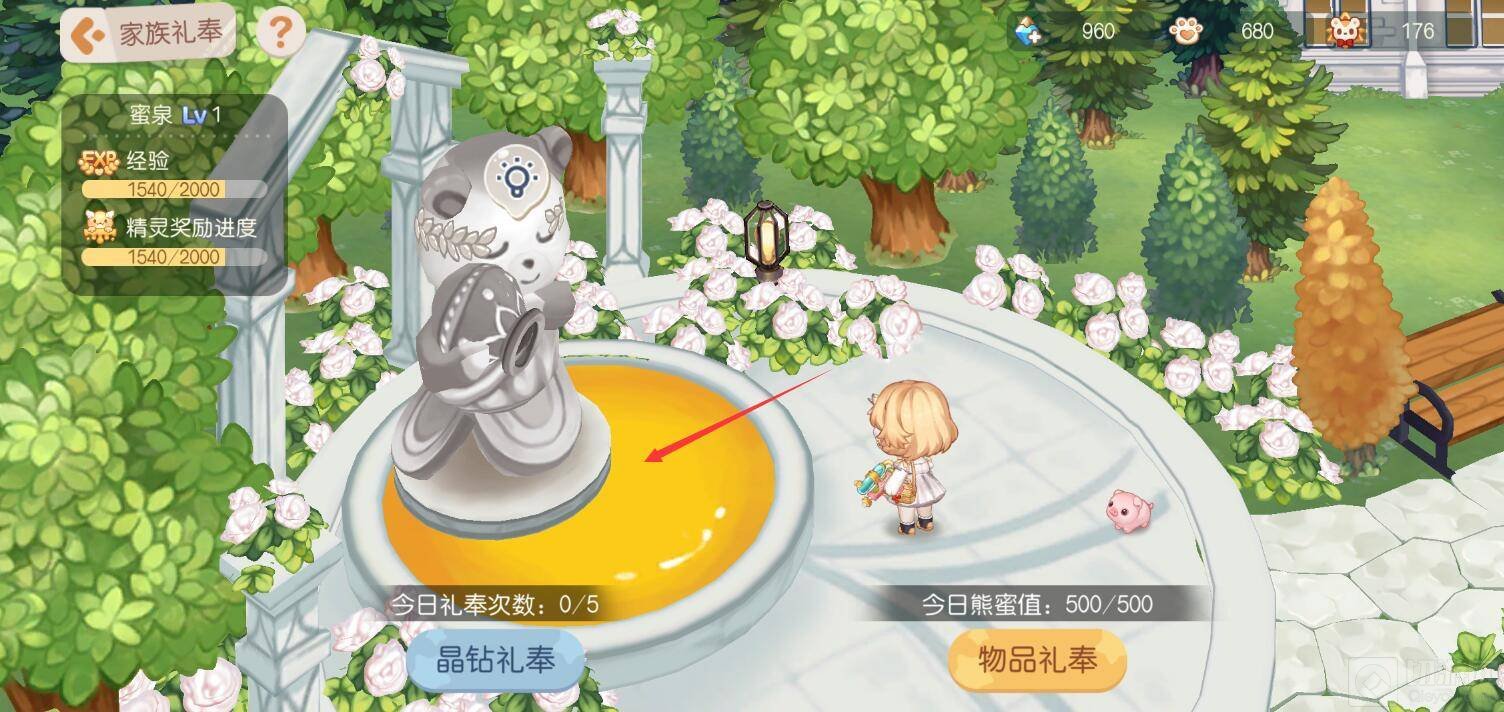2. 在家族基地的左侧就可以看到贤者蜜泉了,可以在这里进行家族礼奉。