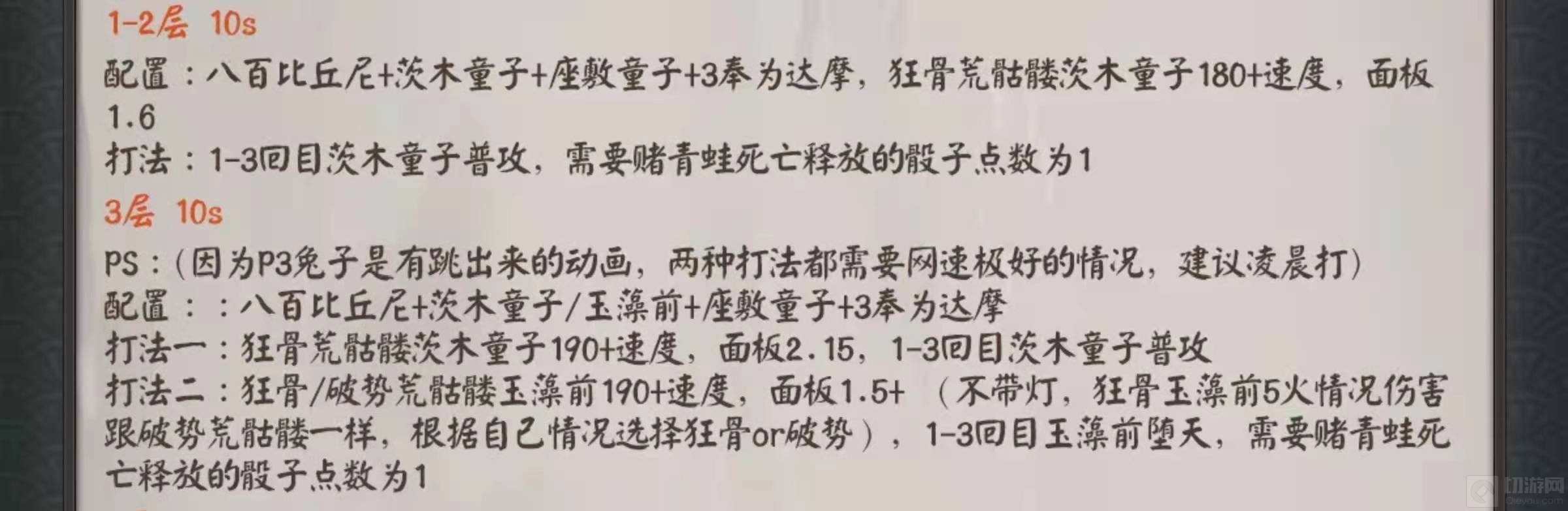 1.1-6层:难度并不是很大,前6层可以直接双拉一波流带走,这个是非常简单的,也可以考虑用高速茨木迅速通关,不过还需要搭配火灵座敷童子还有瑰吞才算能快速通关。