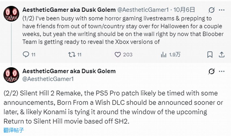 Dusk Golem分析称,DLC的公布/上线可能会与2026年改编电影《重返寂静岭》上映同步。