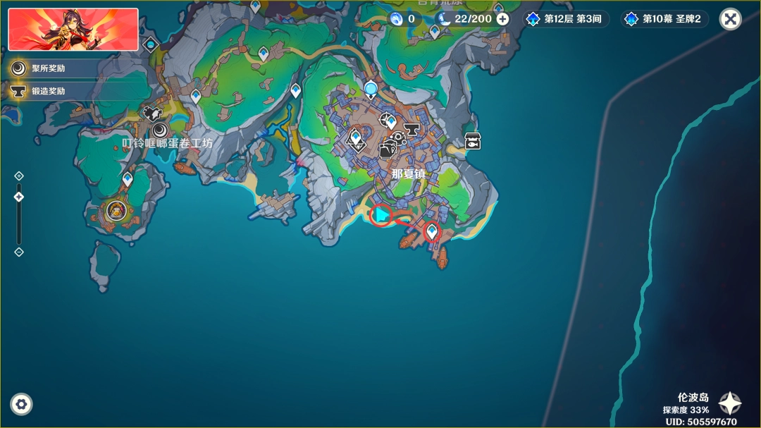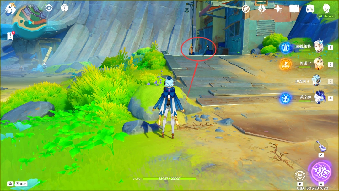 这里我们传送到「那夏镇」正南方的传送锚点,来到下图位置