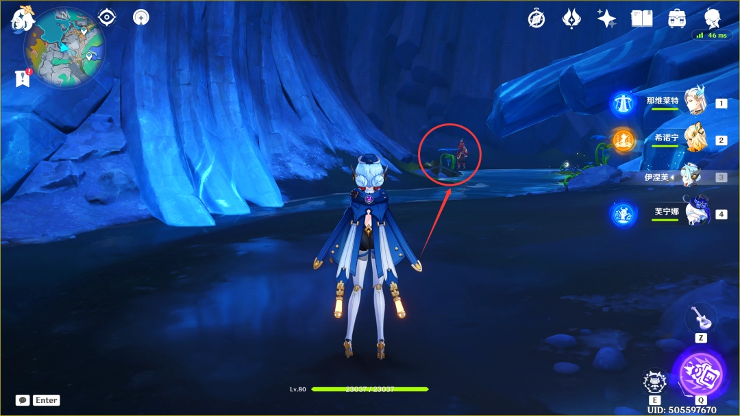 这里我们传送到「蓝珀湖」正西方的传送锚点,来到下图位置