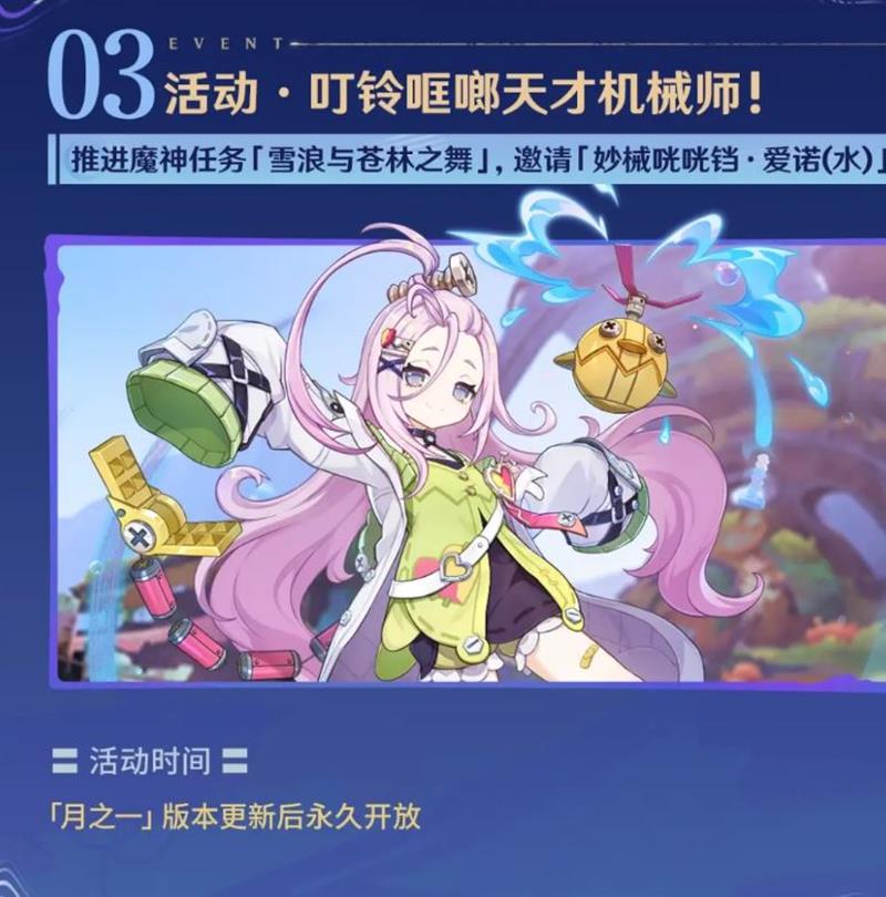 月之一版本将带来全新的地图「挪德卡莱」,这是一个至冬边疆的月之领域,融合了工业与魔幻美学,9月10日开放。探索奖励包括完成全地图探索可获得400原石+新道具「旋翼浮空憩榻」。