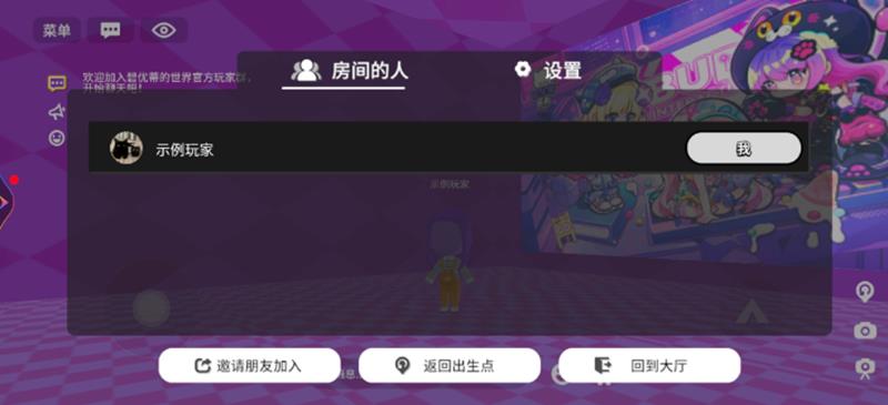 房间的人列表显示了与你处于同一地图的所有玩家,你可以查看他们的个人主页,发送好友请求,扩大自己在碧优蒂的世界中的社交圈子。无论是创建私人房间还是公开房间,都可以通过复制邀请码的方式邀请其他玩家加入你的地图世界。