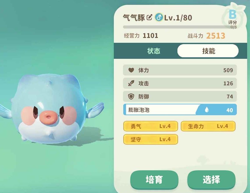 经过约会合成,使三金词条合到气气豚身上勇气 4+坚守 4+生命 4。
