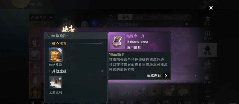 目前拓源令获得途径只有终绝宝箱和云巅返利