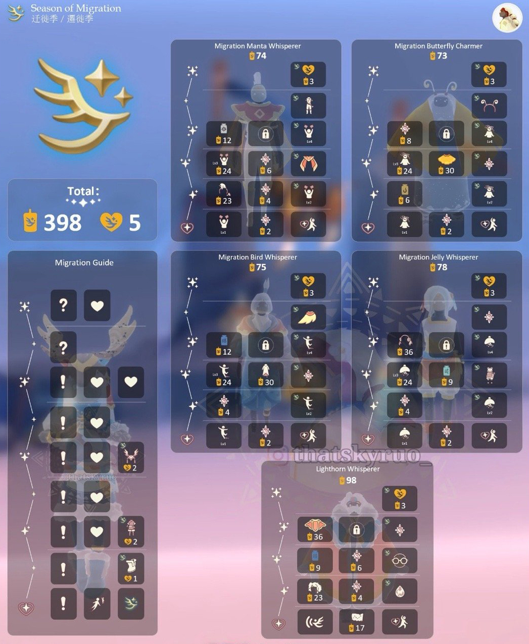 截至目前,有5个先祖,3个毕业礼,10个季节任务,毕业需要398季节蜡烛