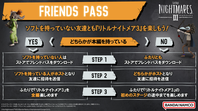 ·官方免费发布的朋友通行证允许同一平台的好友玩家展开在线合作冒险,另外《小小梦魇3》的数字豪华版将包含“〈漩涡的秘密〉扩充票”(内容为2篇额外章节)以及能隐藏身分的“摆渡人服装套组”与“居民服装套组”,感兴趣的玩家可以考虑入手。
