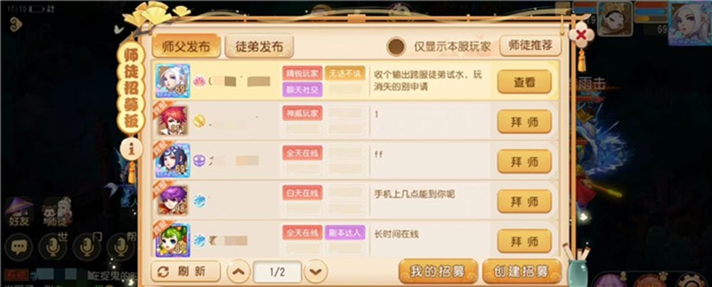 跨服收徒和拜师的操作非常简单,玩家只需要在师徒招募版中发布相应的招募帖子即可。目前有很多玩家选择主动招募徒弟,想要拜师的玩家有较多选择空间,而想要收徒的玩家则需要自身条件较为优秀才能吸引到徒弟。