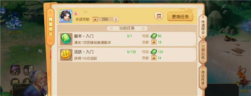 选择好师傅后,玩家可以进入专门为跨服拜师设计的场景五叶堂进行结对拜师。拜师成功后,师父可以为徒弟发布一系列教学任务,徒弟完成全部任务后可以获得相应的积分奖励,同时还能为宗门贡献名望值。