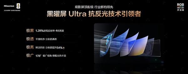 更贴心的是,它还把有害蓝光降低了42%,就算熬夜追完一整部剧,眼睛也不会酸溜溜的;能耗比同类QD-Mini LED电视低40%以上,长期用下来,电费都能省不少。屏幕也是定制的黑曜屏Ultra,反射率才1.28%,白天不用拉窗帘,晚上开着大灯,画面都不反光,黑得特别深邃;178°的超广视角更不用多说,不管你坐在沙发角落还是餐厅,看的画面都一样清晰震撼,再也不用抢“C位”了。