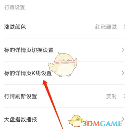 3、紧接着在弹出的界面点击标的详情页K线设置。