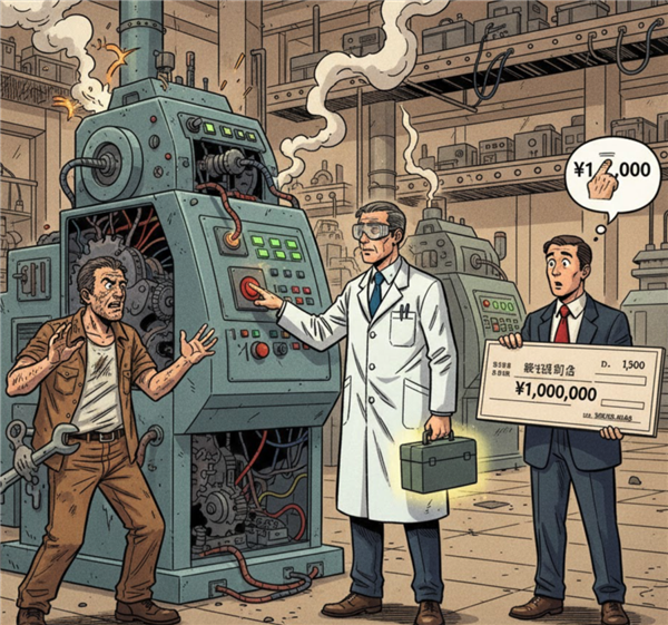 而且,故事里专家面对的是企业——设备停工一天损失百万,救急收 100 万是市场定价;而今天维修师傅面对的是普通消费者,操作一下收 2000 块那叫趁火打劫。