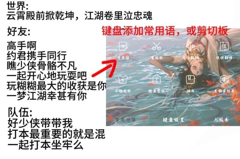 然后到了时间比如周日,开小号邀请进队,优先把做动作表情的做了,然后是发消息,如图2,有时候做完会继续刷到发消息任务,打字太麻烦,直接添加键盘,后面连续几周都可以用。