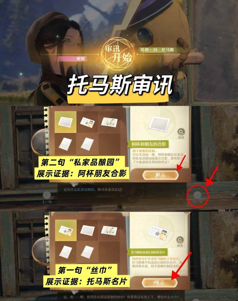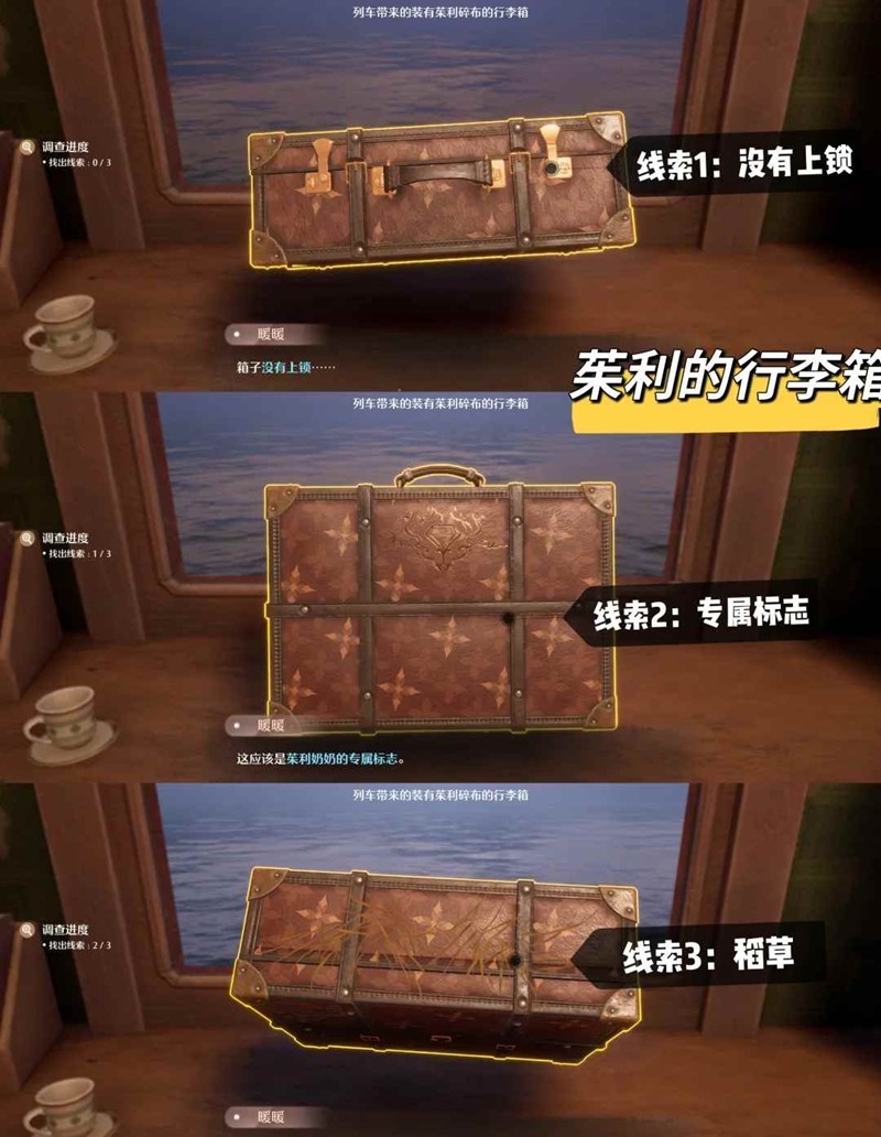 包含各点位调查线索一览图、日志行李箱、举证审讯等