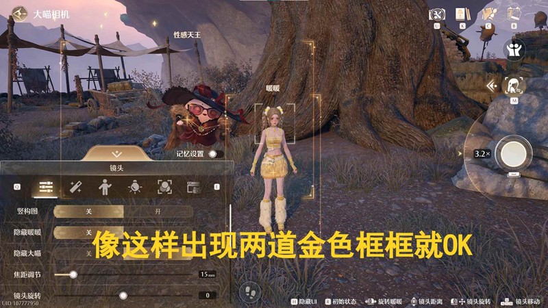 没做行李箱里的罪恶主线,可以到遗忘者村居锚点附近找到 性感天王,与它合照,出现两道金色框即可;