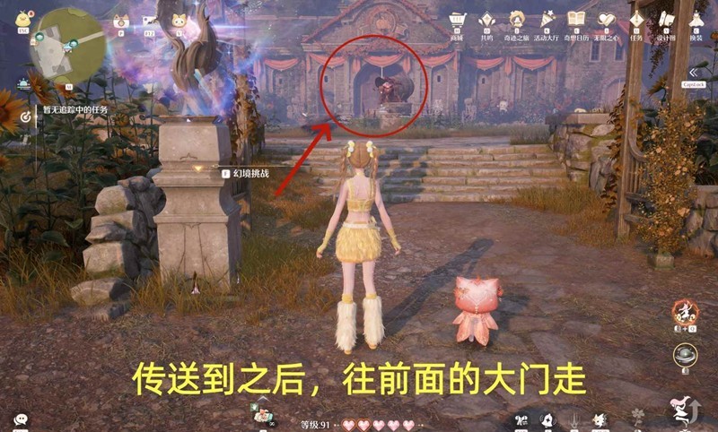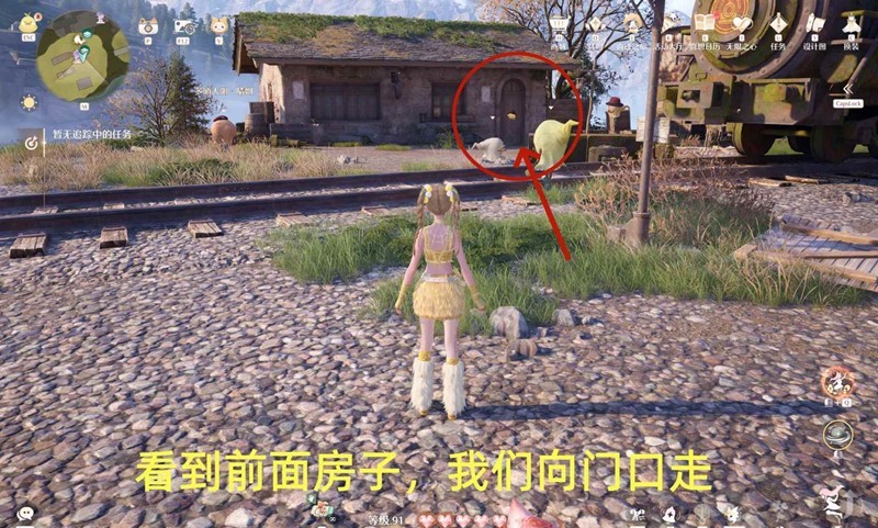 我们传送到 呜呜车站旧月台 锚点,转动视角看到一个红色棚子,我们对着红色棚子的右前方走;