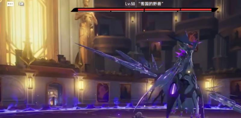 当歌剧进行到高潮部分,原本温馨的氛围突然被打破,演出戛然而止,紧接着画面切换至战斗场景。此时雪国的野兽正式现身,作为剧情BOSS向玩家发起攻击。这场战斗并非独立存在,而是与歌剧叙事紧密交织。战斗过程中,字幕会持续推进剧情,描述野兽如何侵袭城堡,象征着内心冻结与外界威胁的双重压迫。