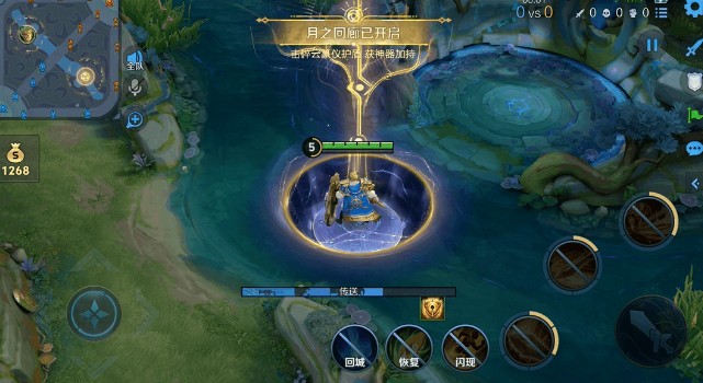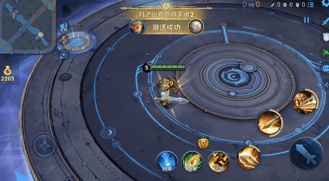 玩法介绍:游戏6分钟时,峡谷河道两侧将会生成通往月之回廊的传送阵,踩入传送阵将会传送至月之回廊,同时获得护盾庇护,月之回廊持续60秒。