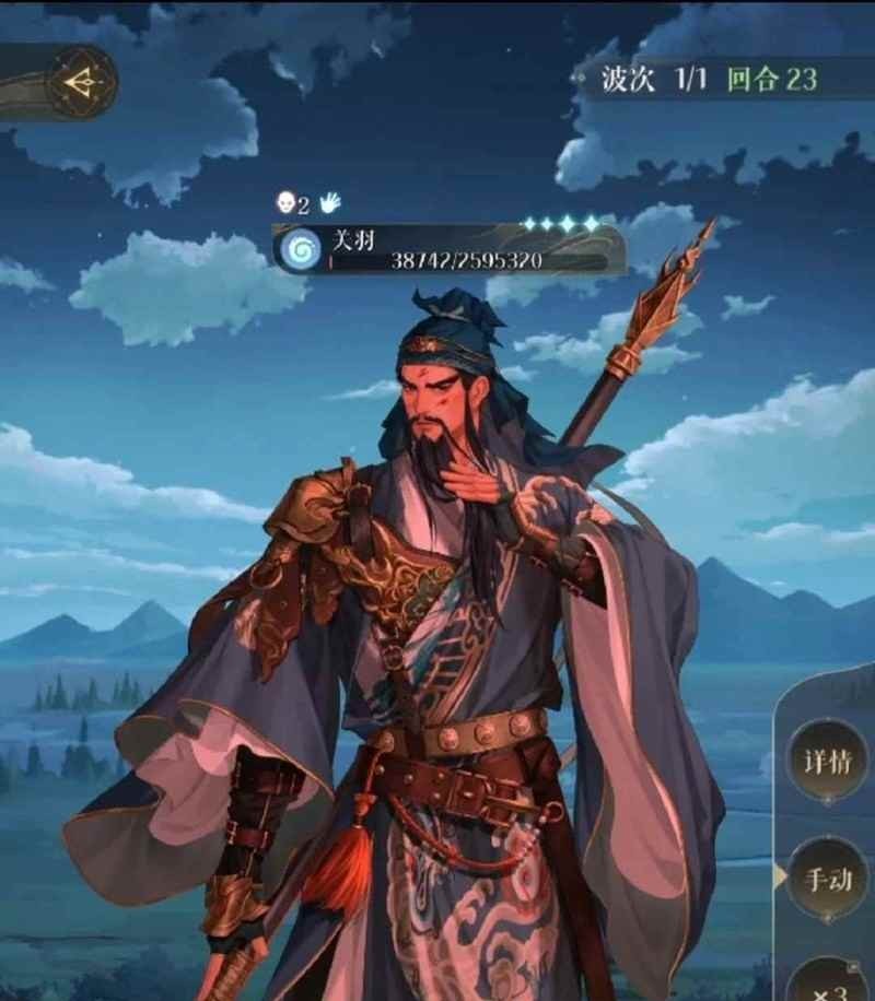关羽的大招在第一阶段是全体攻击,并给目标一次绿色或紫色效果,注意关羽的标记位置效果
