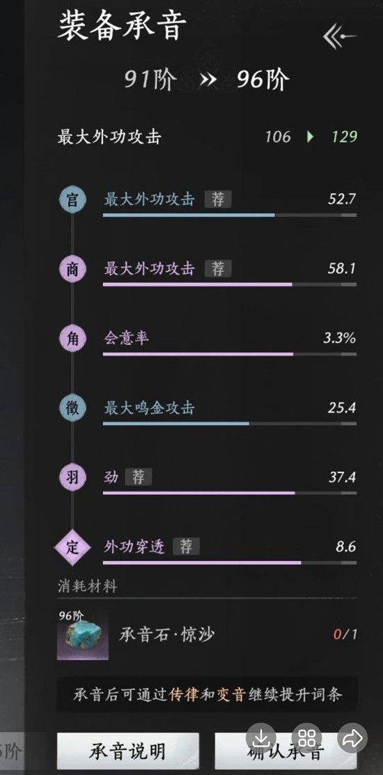 3)意思就是承音词条全对就行*不需要考虑原本的词条有多低*,他都能慢慢喂到96金词条的水平