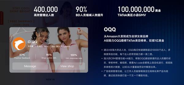 以TikTok头部女装品牌OQQ为例,过去100人团队管理的达人规模,如今通过A创实现40万+达人资源的高效运维,仅需8名BD人员。团队将精力集中于高价值达人的私域化运营与内容策划,达人履约率与单产效能同步提升。