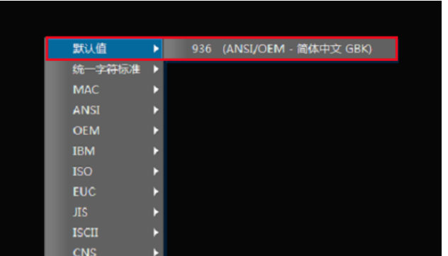 2、然后在弹出的选项列表中选择"默认值",可以看到默认格式为"GBK"。