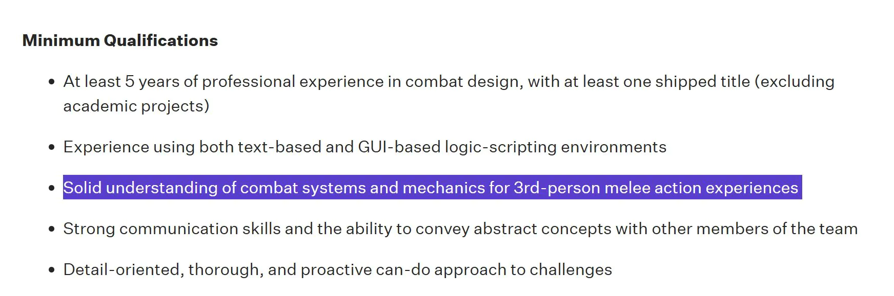 值得关注的是,这家曾成功推出《神秘海域》与《战神》三部曲重制版的工作室,在2020年凭借PS5首发大作《恶魔之魂:重制版》赢得业界赞誉。此次招聘要求中明确提及对应聘者需"扎实掌握第三人称近战动作游戏机制",表明战斗系统将成为新作的核心要素。