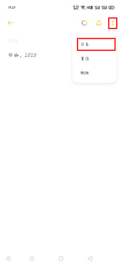 1、首先打开OPPO手机的便签应用,选择需要移动至新手机的便签,点击进入后,点击右上角的【更多】,然后选择【分享】功能;