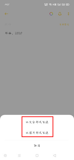 2、我们可以选择以文字、图片形式发送,文字形式直接将便签内的文字进行复制,图片形式则是将便签内的文字变成图片,然后分享图片;