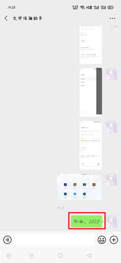 5、最后打开与好友的聊天对话框,可以看到便签已经发送给好友了,在新手机登录微信账户,然后复制该文字,新建便签进行粘贴保存。