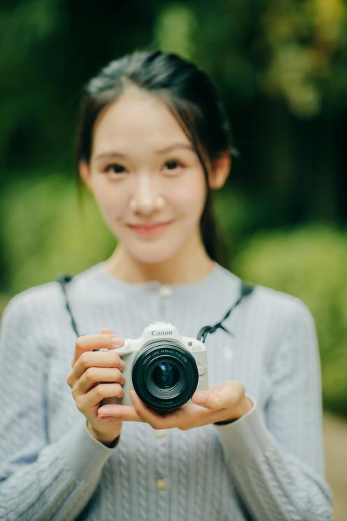 但是这套高颜值相机绝不是徒有其表的花瓶,在它好看的外表之下却有着非常强悍的性能,EOS R50有效像素约2420万,在搭配RF50mm F1.8 STM的时候等效焦距为80mm,接近85mm的经典人像焦段,四舍五入获得一个人像小钢炮啊!在我们拍摄人像的时候背景可以获得大幅虚化,让人物更加突出。