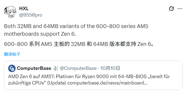 由于这一规格是大多数AM5主板32MB标准的两倍,这引发了关于Zen 6是否可能仅限于配备更大容量BIOS芯片的新型AM5主板的讨论。