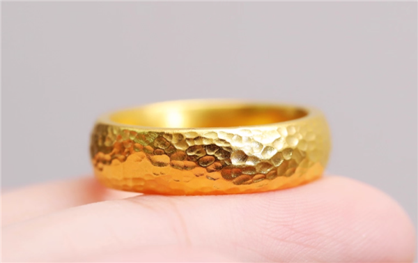各种不同用途的金属器皿都可以敲打出这样的锤纹表面,除了上图的酒杯,下图金戒指的锤纹表面也是常见的经典款。