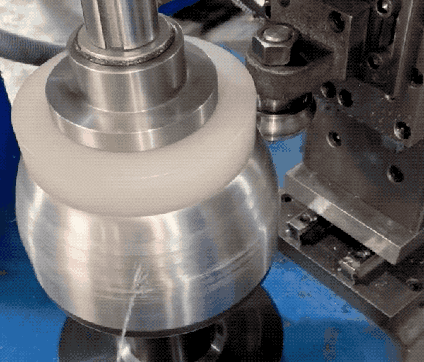 一种方法和之前做压纹杯具一样,把锅具套在有纹路的模具上,给锅具的内外都硬生生挤压出片片雪花纹得效果。