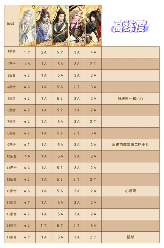 图上的练度算是我过这关的极限,后期要控血让小兵在14回合死(防御减少反伤伤害),如果练度比较高实在控不住血也可以尝试p4的表格直接强杀。