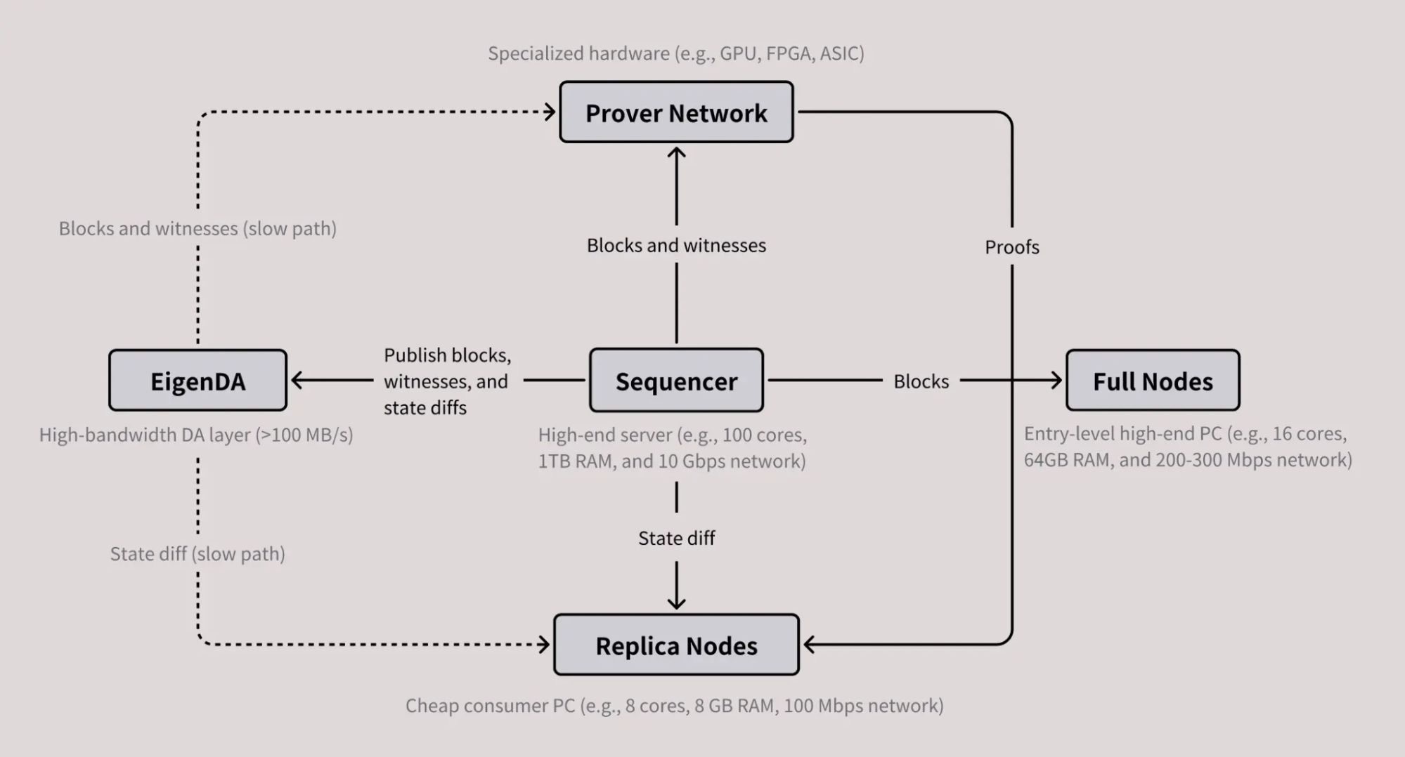 MegaETH 设计为一个亚毫秒延迟、高于 10 万 TPS 的 Layer 2 区块链。为实现这一目标,它采用了角色分明的节点架构,以提升速度、可扩展性和去中心化。