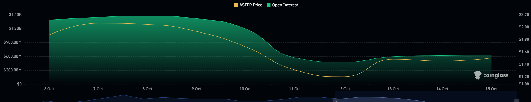 与此同时,CoinGlass这也提供了一个有趣的图景。Aster 的衍生品交易量下降 8.58% 至 32.9 亿美元,但未平仓合约增长 4.73% 至 6.1497 亿美元。