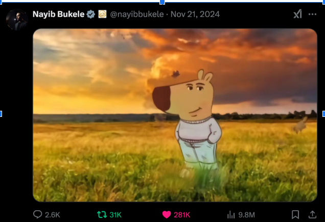 随后,CHILLGUY迅速在拉丁美洲、非洲和中东国家也出现一定热度。在西班牙,人们甚至给他起了个新名字:“Chico Chill de Cojones”,就连萨尔瓦多总统也开始使用“Chill Guy”这个梗。