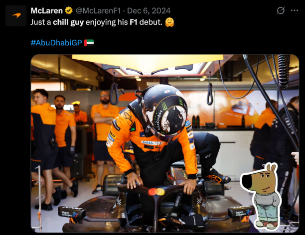 全球热爱“Chill Guy”的粉丝很多,但运动员和体育迷似乎更爱他!很多体育账号发布过“Chill Guy”表情包,比如F1赛车账号。此外,篮球、板球、棒球等各种运动的账号也都提到过这个表情包。