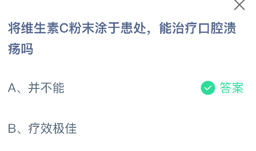 1、题目 :将维生素C粉末涂于患处,能治疗口腔溃疡吗