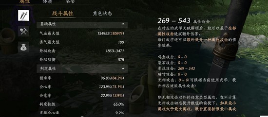 面板:三率只要会心黄字75,其他会意精准通通属于无效词条。因为奶奶默认满精准不会丢失也不会触发会意。达成后优先追求大小外和玩家增效、伞扇增效、大小牵丝 。定音左边外功穿透右边扇武学加成或者治疗(重击)加成。不要任何外系属攻,吃不到一点加成。