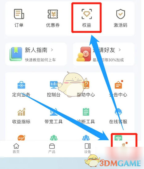 1、在网心云“我的”窗口中点击“权益”图标。